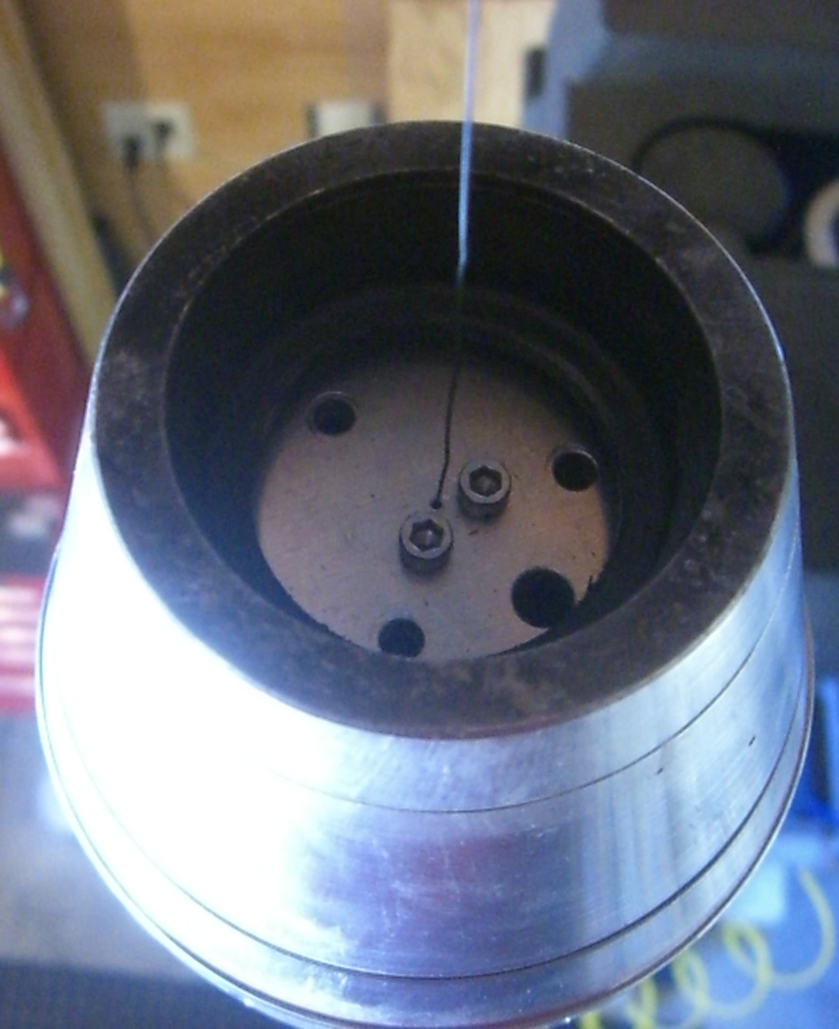 - Calibration Mass - A 5.5" dia. x 10" solid aluminum cylinder was used as a calibration mass to determine the wire constant.